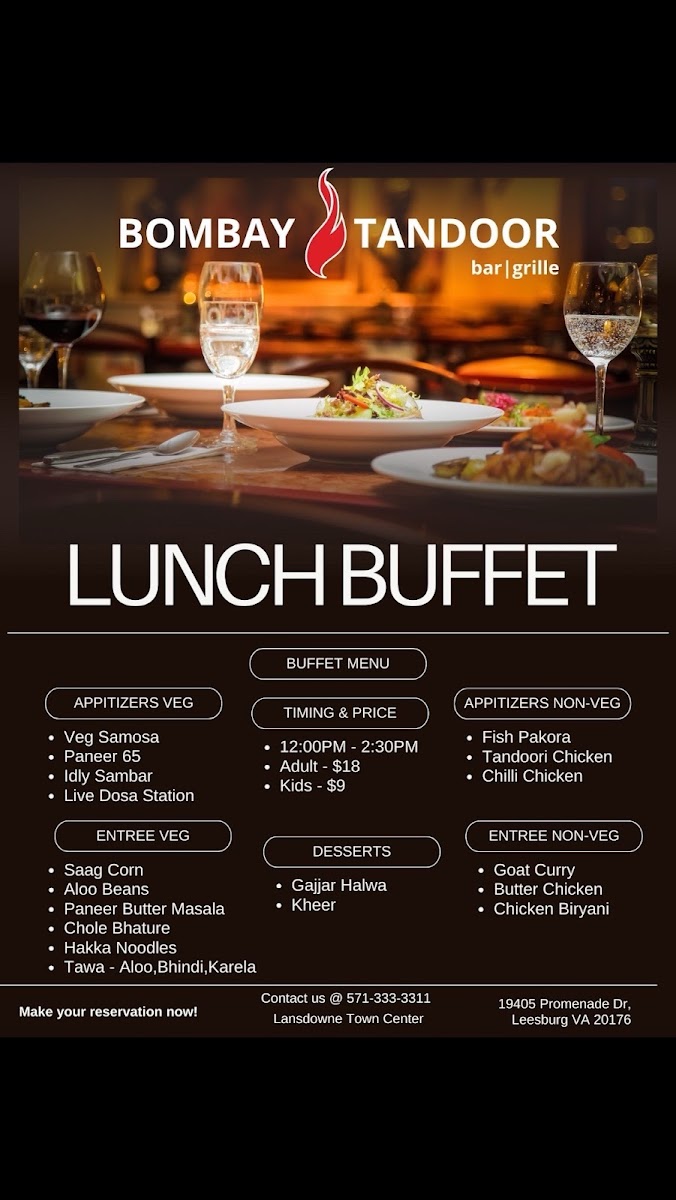 Welcome to Bombay Tandoor Bar and Grille - Lansdowne, where the vibrant flavors of Indian cuisine come alive! Nestled in Leesburg, VA, this culinary gem offers a diverse menu that promises to tantalize your taste buds.